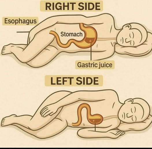 The stomach and esophagus are positioned in such a way that lying on the left side helps keep stomach contents below the opening to the esophagus. This orientation may reduce the likelihood of stomach acid flowing upward, which is what causes the burning sensation many people associate with reflux.